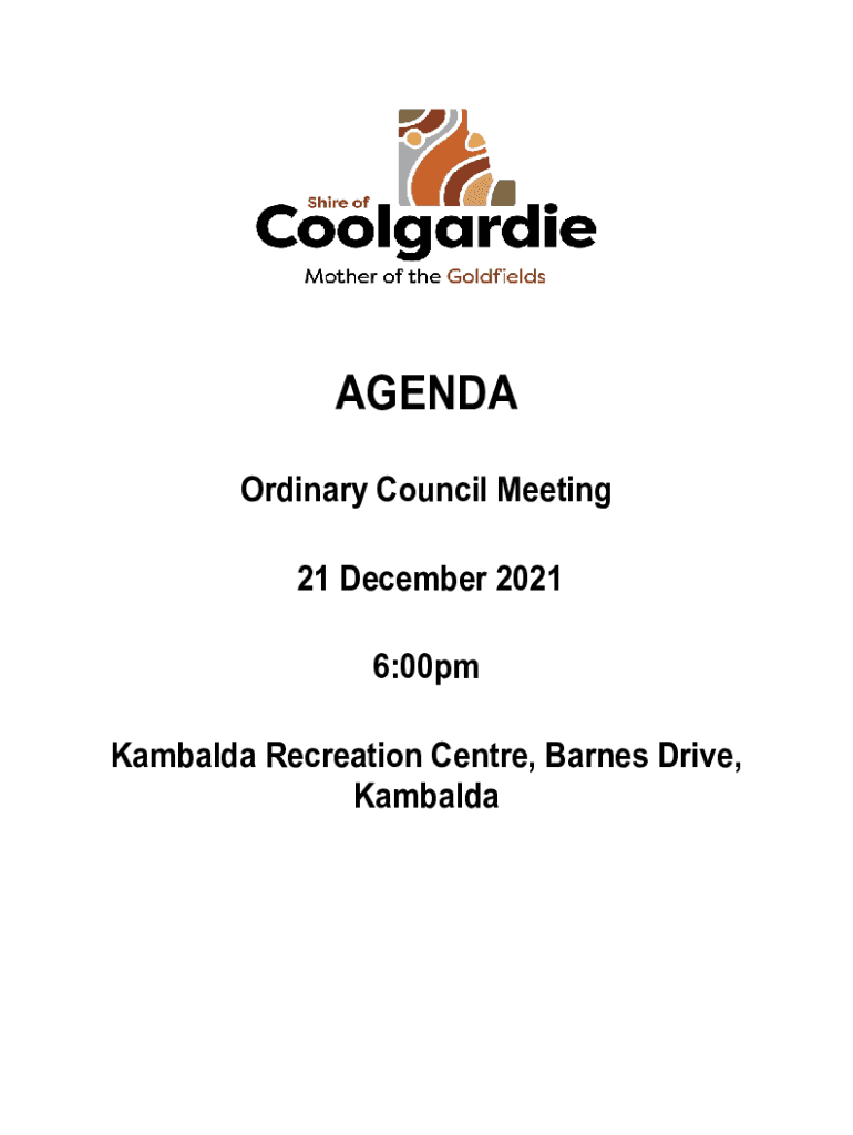 KambaldaORDINARY COUNCIL MEETING AGENDA21 DECEMBER 2021SHIRE OF FOOLHARDIER