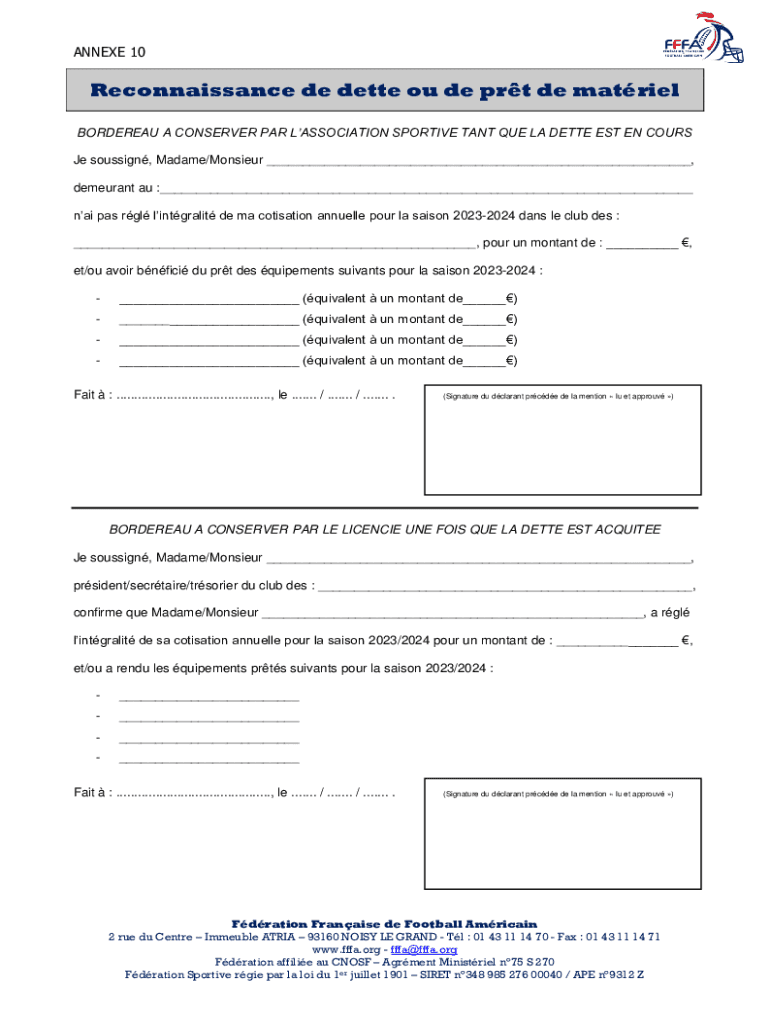 Obtenir le gratuit Reconnaissance de dette ou de prt de matriel