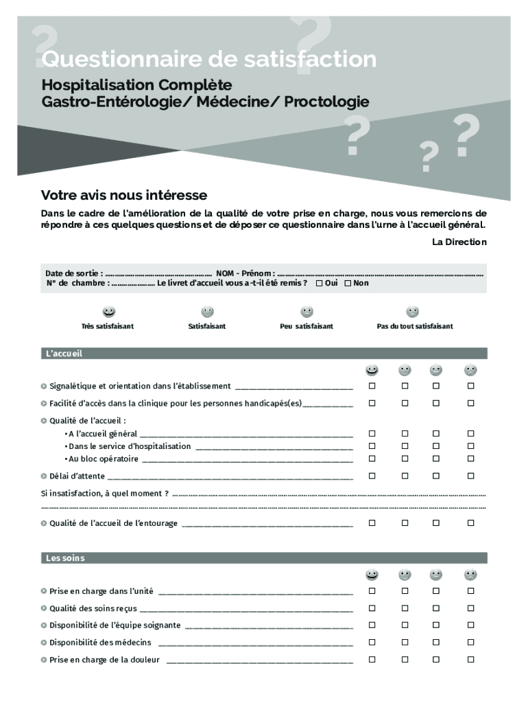Comment remplir questionnaire de satisfaction hospitalisation?