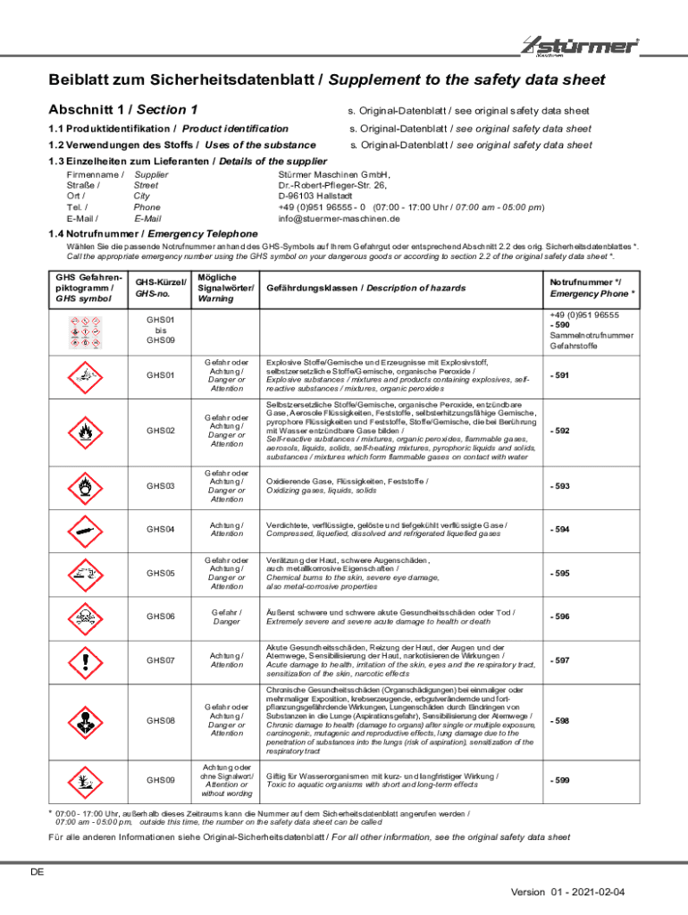 Get the free Safety Data Sheet 1 Identification 2 Hazard(s) ...