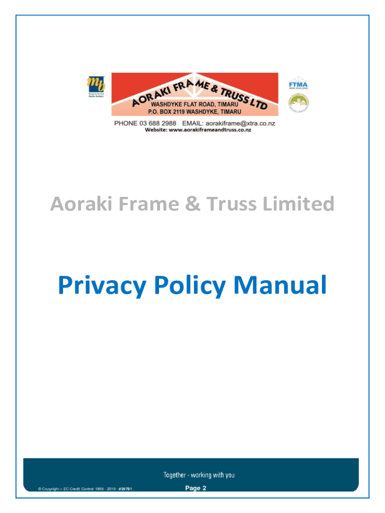 Anorak Frame & Truss LimitedPrivacy Policy Manual Copyright EC Credit Control 1999 2019 #29781Page 2Table Of Contents 1. Introduction ___ Page 42. Privacy Principles ___ Page 53. General Data Protection