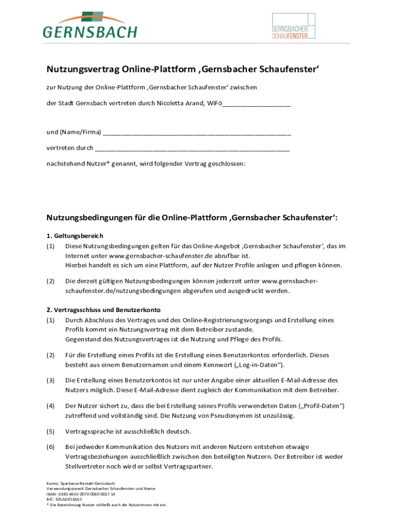 Nutzungsvertrag OnlinePlattform Gernsbacher Schaufenster