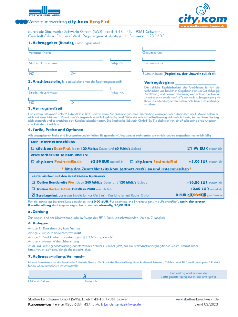 Wie fülle ich versorgungsvertrag citykom easyflat aus?