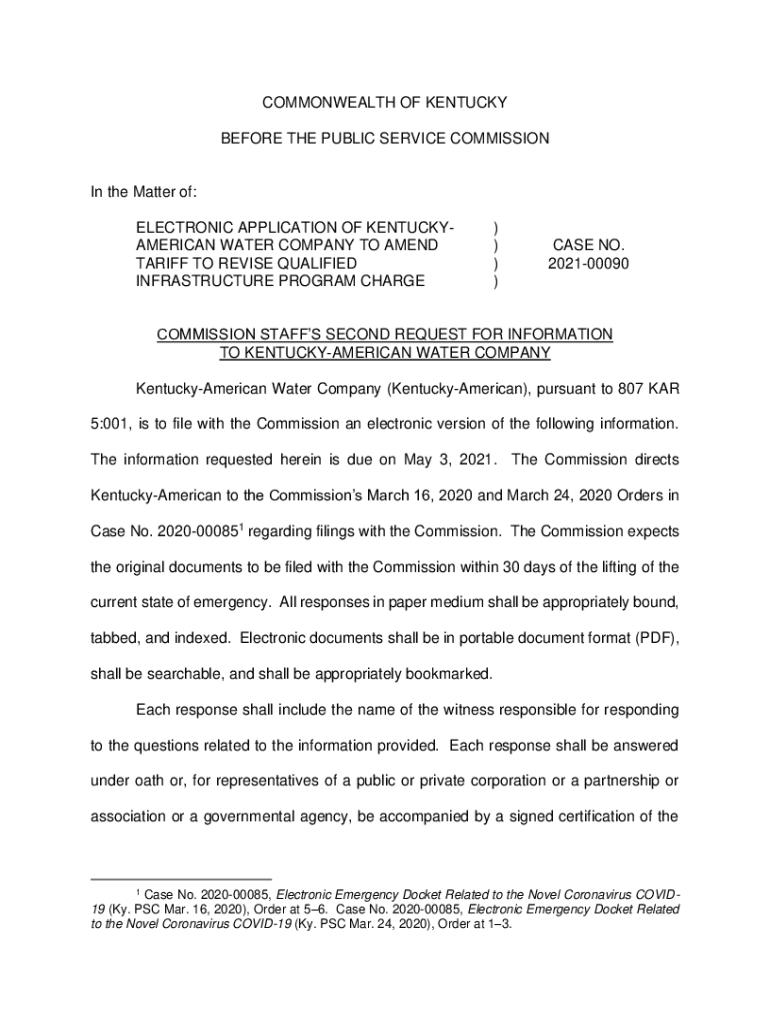 COMMONWEALTH OF KENTUCKY BEFORE THE PUBLIC SERVICE Commissioning the Matter of: ELECTRONIC APPLICATION OF KENTUCKYAMERICAN WATER COMPANY TO AMEND TARIFF TO REVISE QUALIFIED INFRASTRUCTURE PROGRAM