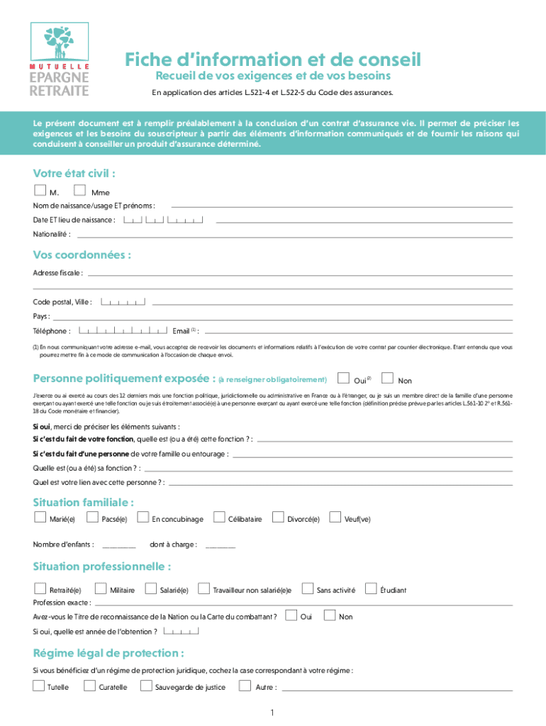 Rectal de Los exigences et de Los besoinsEn application DES articles L.5214 et L.5225 Du Code DES assurances. Le present document est repair pralablement la conclusion