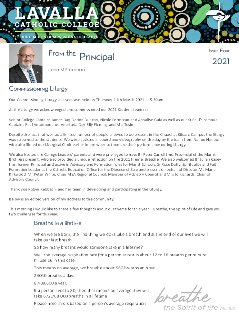 From thePrincipalJohn M FreemanIssue Four2021Commissioning Liturgy