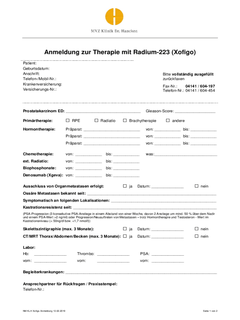 Das Formular when prostate cancer goes muss mit den relevanten Informationen zu einem Prostatakrebsfall ausgefüllt werden.