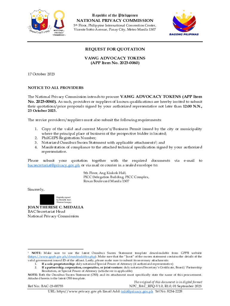 Vicente Motto Avenue, Pasty City, Metro Manila 1307REQUEST FOR QUOTATION
