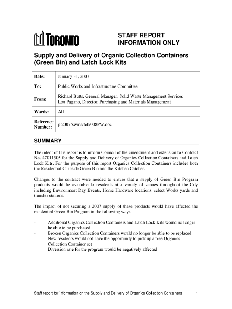 Date:January 31, 2007To:Public Works and Infrastructure CommitteeFrom:Richard Butts,