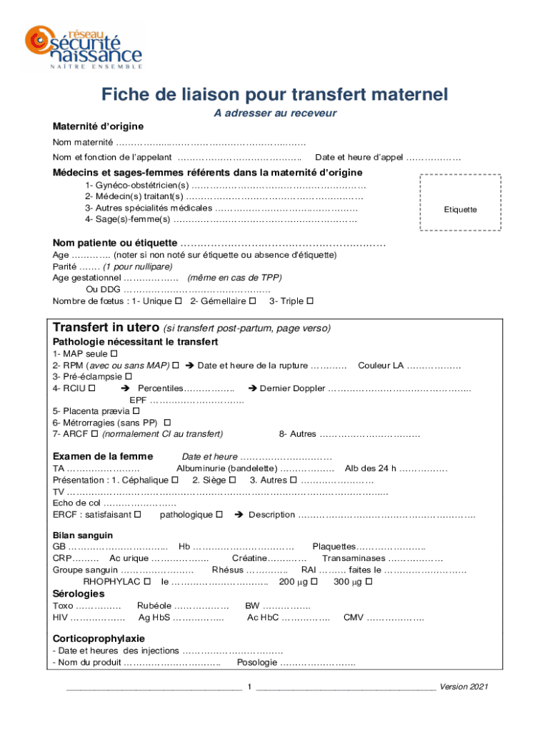 Fiche DE liaison pour transfer maternal A dresser AU receiver Maternity origin Not maternity ...... No met function DE appellant. Date ET here dapper Myelins et sagesfemmes parents days la maternity