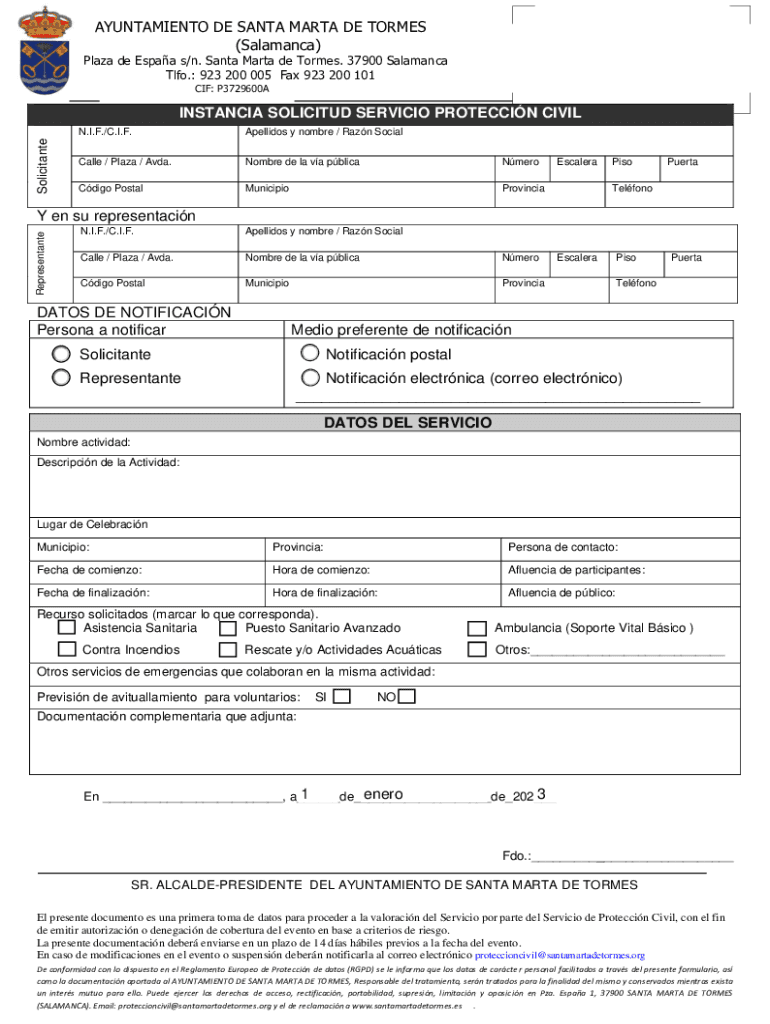 CIF: P3729600ASolicitanteINSTANCIA SOLICITED SERVICE