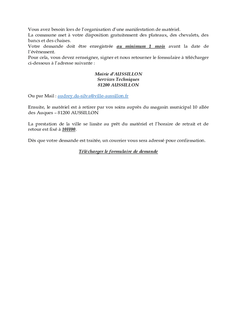 Obtenir le gratuit Vous avez besoin lors de lorganisation dune manifestation de matriel, la commu...