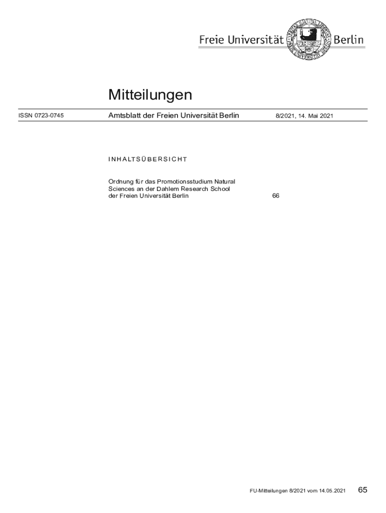 ISSN 07230745Amtsblatt her Train University Berlin8/2021, 14. Mai 2021I N H A LT S B E R S I C H Morning for was Promotionsstudium Natural