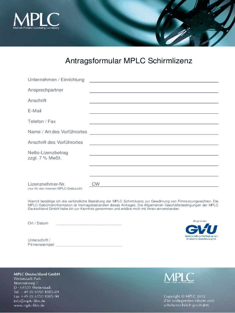 Der Veranstalter oder die verantwortliche Person muss den Vorführort angeben und einreichen.