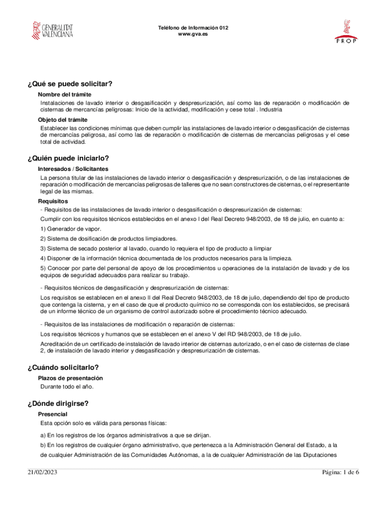 Installations DE lav ado interior o desgasificacin y despresurizacin, as Como leis DE reparation o modification DE