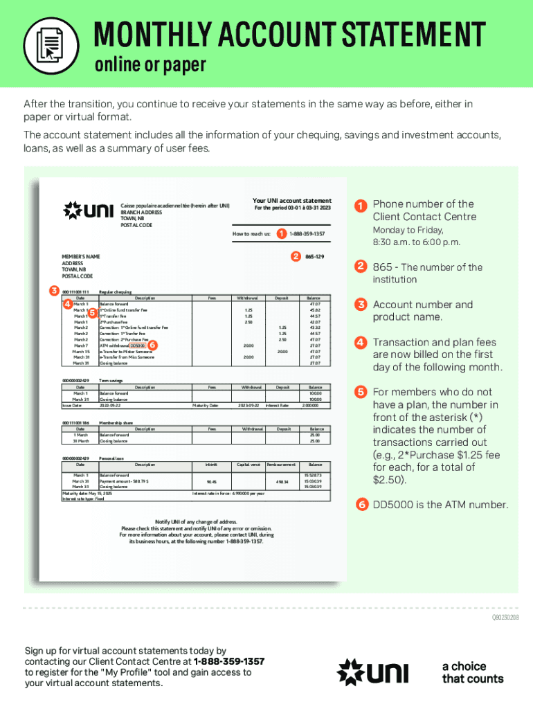 The account statement includes