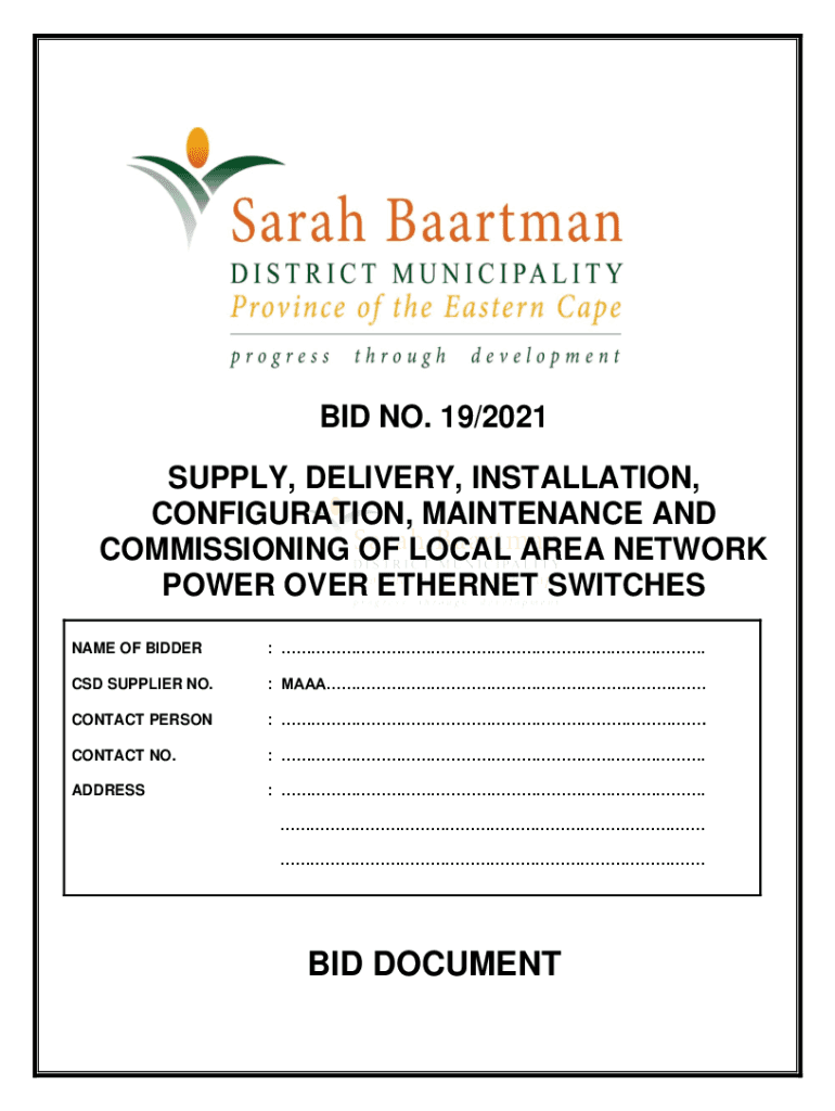 BID NO. 19/2021 SUPPLY, DELIVERY, INSTALLATION, CONFIGURATION, MAINTENANCE AND COMMISSIONING OF LOCAL AREA NETWORK POWER OVER ETHERNET SWITCHES NAME OF BIDDER: .CSD SUPPLIER NO.: MAYA.CONTACT PERSON:.CONTACT