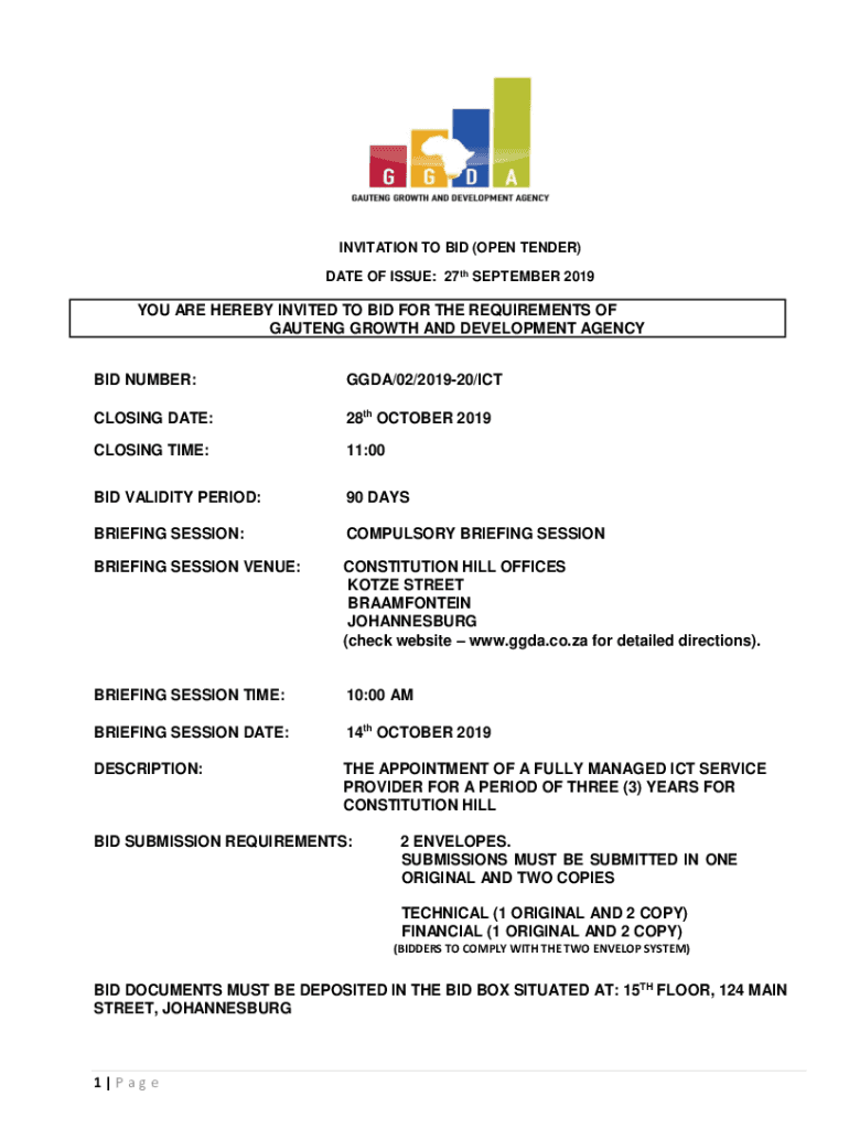 BID NUMBER:GGA/02/201920/CLOSING DATE:28th