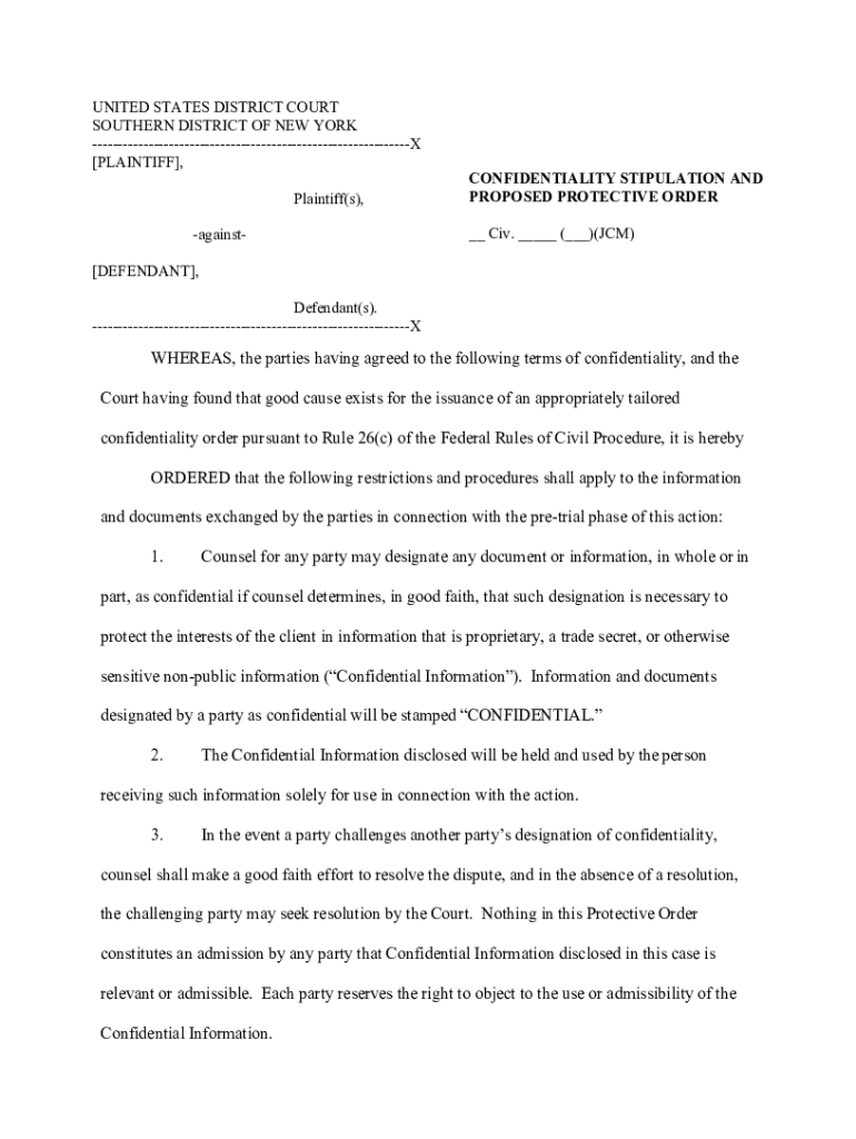 Get the free JCM McCarthy Model Confidentiality and Protective Order ( ...