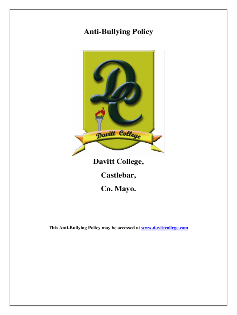Get the free Anti-Bullying Policy Davitt College, Castlebar, Co. Mayo.