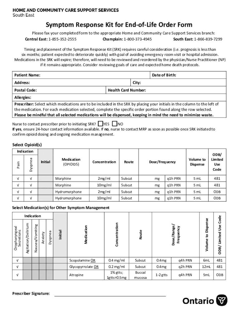 Symptom Response Kit for Endocrine Order Form Please fax your completed form to the appropriate Home and Community Care Support Services branch: Central East: 18553522555 Champlain: 18003734945 South