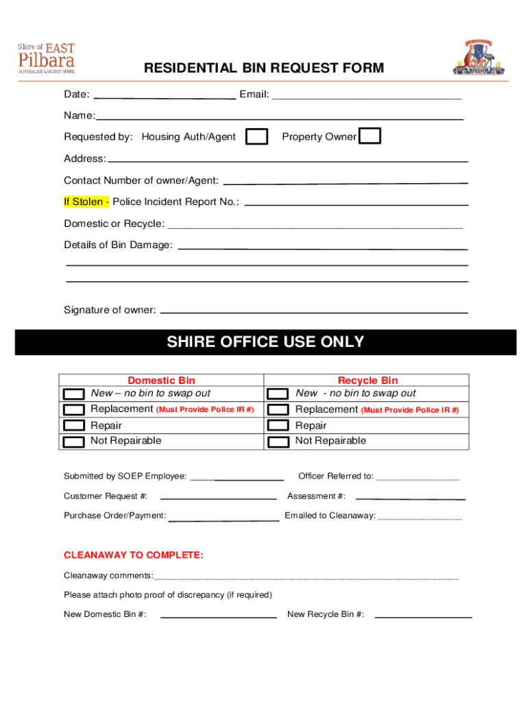 Residential Bin Request Form is not the form you're looking for?Search for another form here.