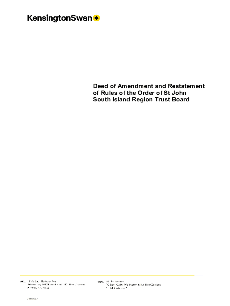 Deed of Amendment and Restatement of Rules of the Order of St John South Island Region Trust Board7855307.1Table of contents Background .............................................................................................................................