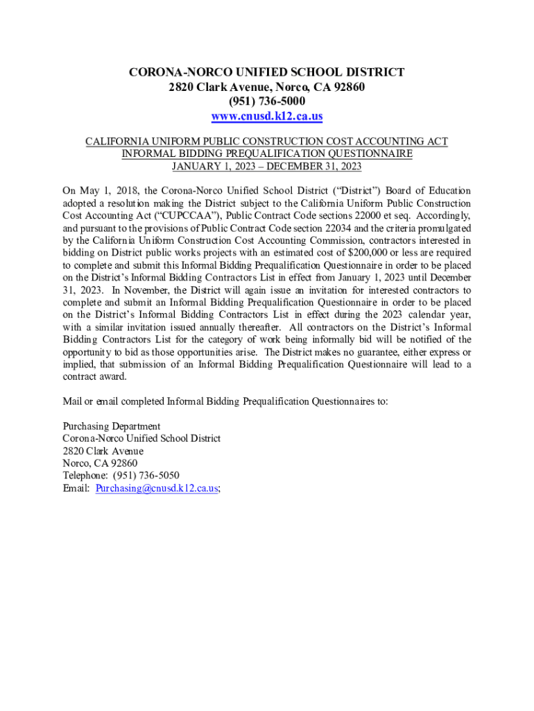 INFORMAL BIDDING PREQUALIFICATION