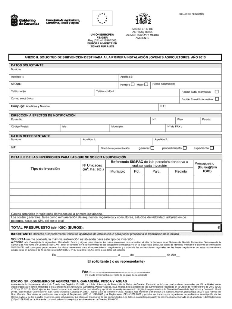ZONES RURALESANEXO II. SOLICITED DE SUBVENTION DESTINED À la