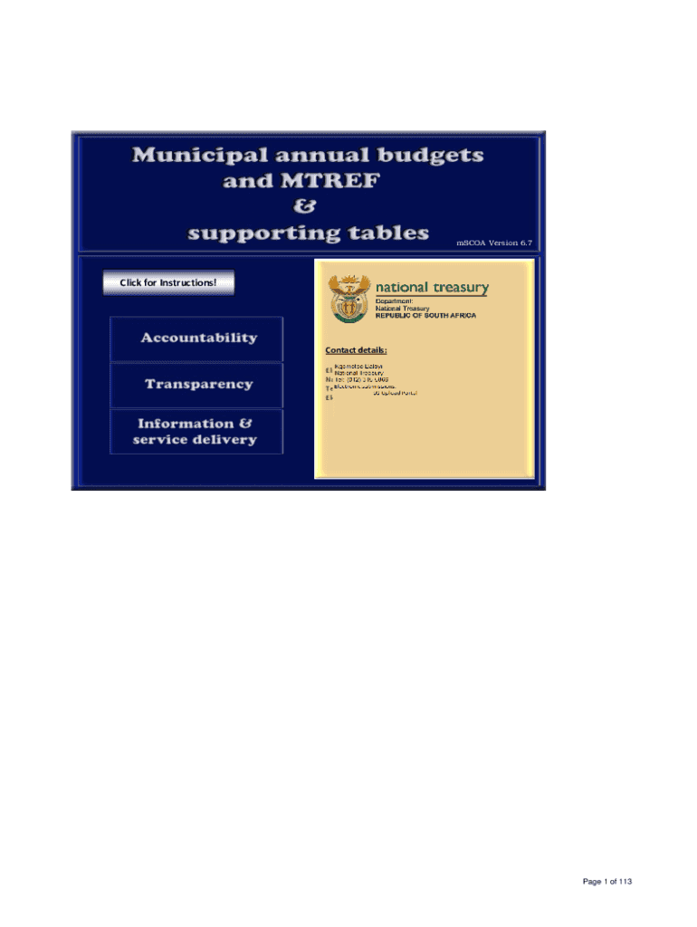 MS COA Version 6.7Click for Instructions! Contact details: Elsa Moscow National Treasury Tel: (012) 3155534 Electronic submissions: LG Upload Portal Page 1 of 1132020Preparation InstructionsMunicipality