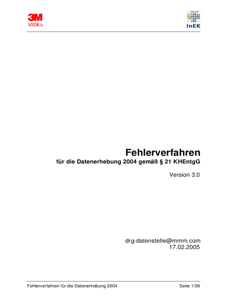 17.02.2005Fehlerverfahren for die Datenerhebung 2004Seite 1/39Inhaltsverzeichnis