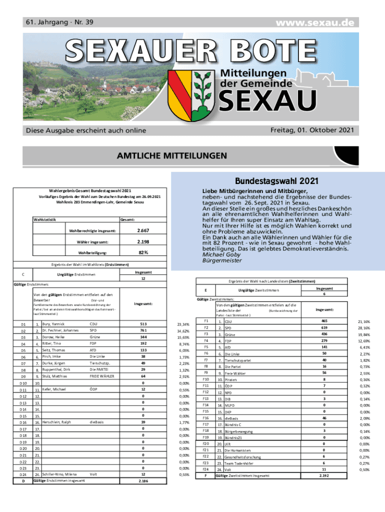 Freytag, 01. October 2021Diese Mugabe merchant such onlineAMTLICHE BEKANNTMACHUNGENBundestagswahl 2021