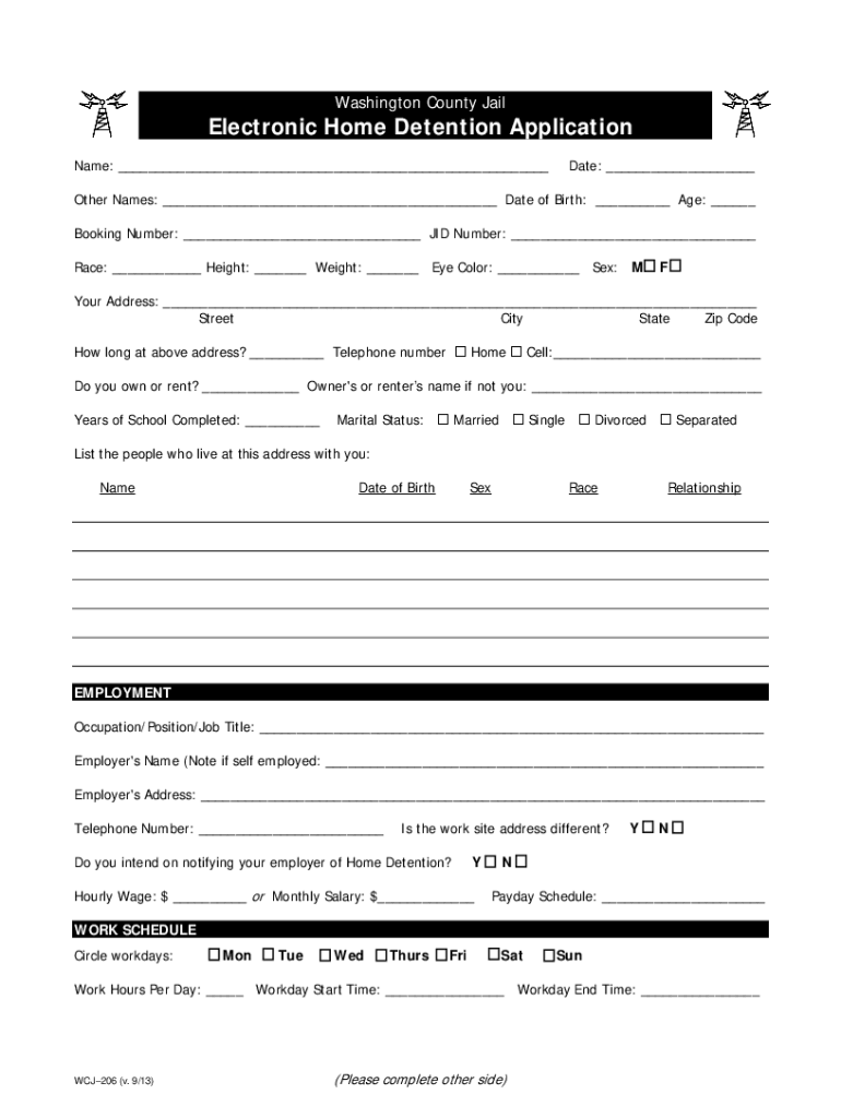 Washington County All-electronic Home Detention Application Name: ___Date: ___Other Names: ___ Date of Birth: ___ Age: ___ Booking Number: ___ DID Number: ___ Race: ___ Height: ___ Weight: ___ Eye
