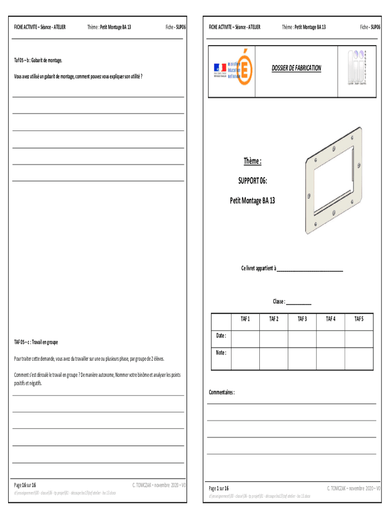 FICHE ACTIVITY Since ATELIERThme : Petite Montage BA 13Fiche SUP06FICHE ACTIVITY Since ATELIERThme : Petite Montage BA 13Fiche SUP06Taf 05 b : Cabaret DE montage. DOSSIER DE FABRICATION