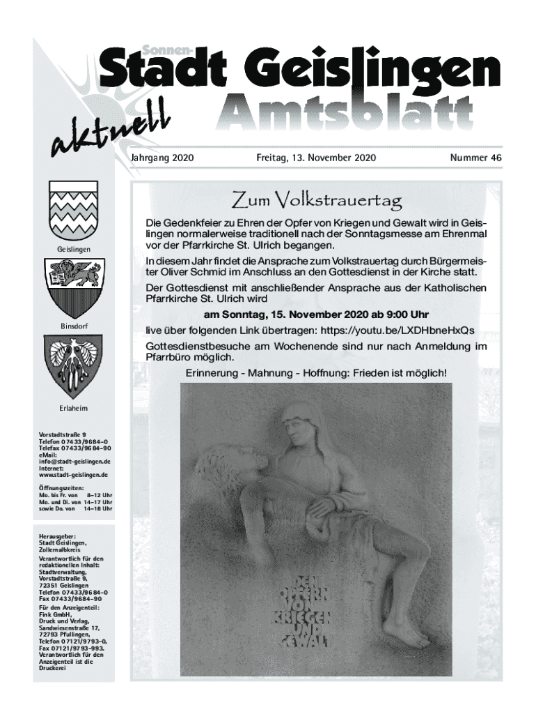aJahrgang 2020Freitag, 13. November 2020Nummer 46Zum Volkstrauertag