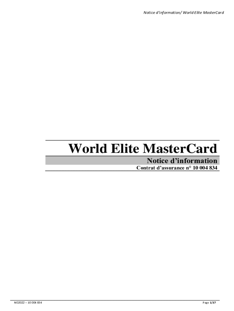Obtenir le gratuit Notice D’information/ World Elite Mastercard