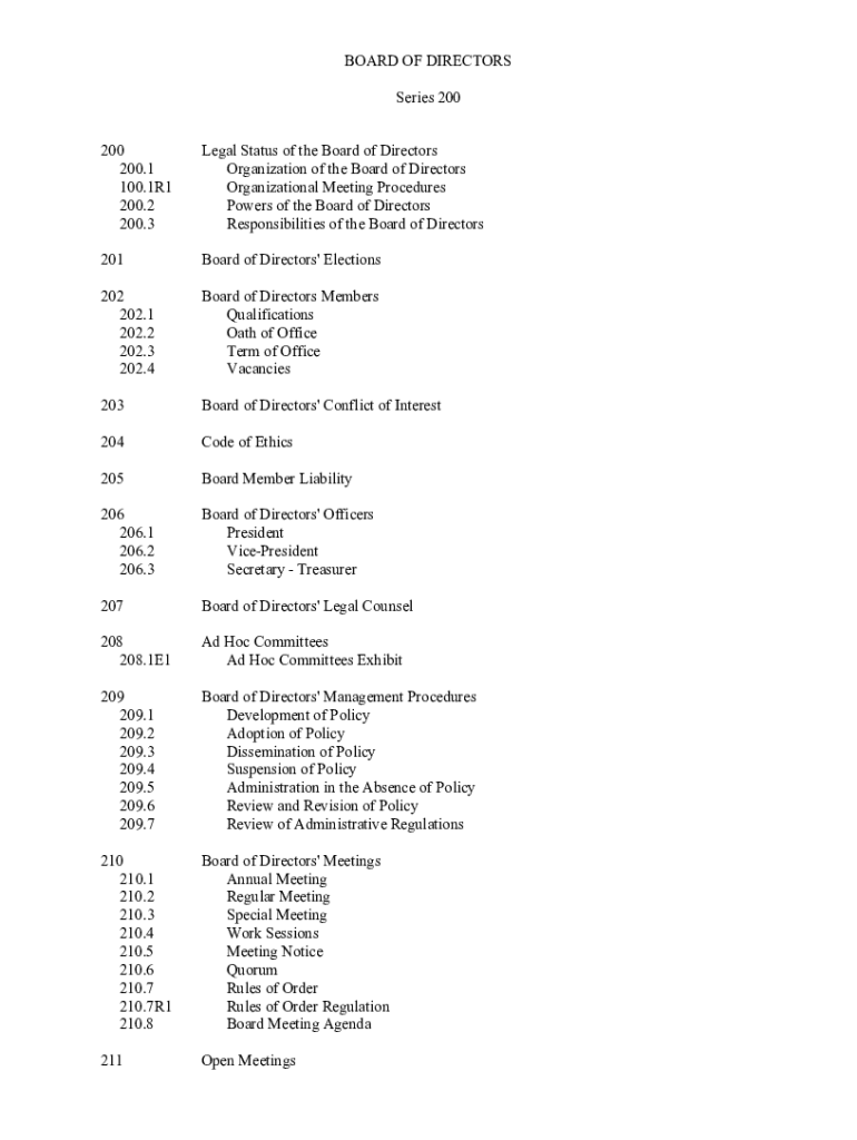 Get the free BOARD OF DIRECTORS Series 200 200 Legal Status of ...