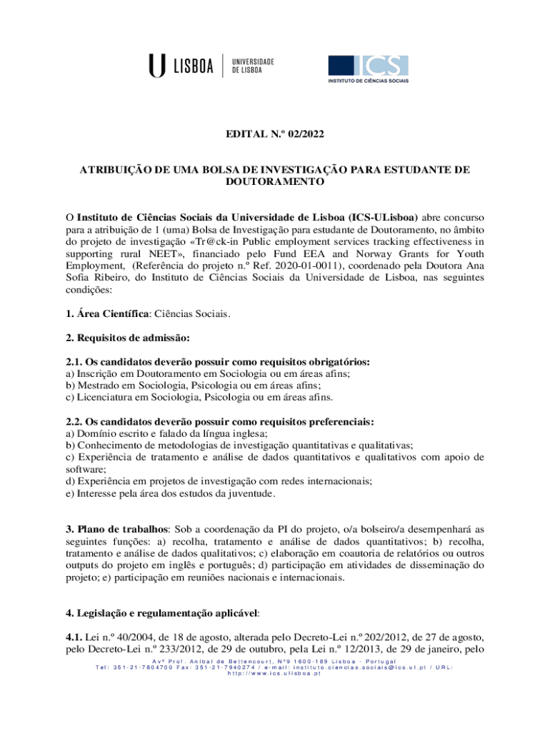 DOUTORAMENTOO Institute de Cincias Socials the Universidade de Lisboa (ICSULisboa) are concurs