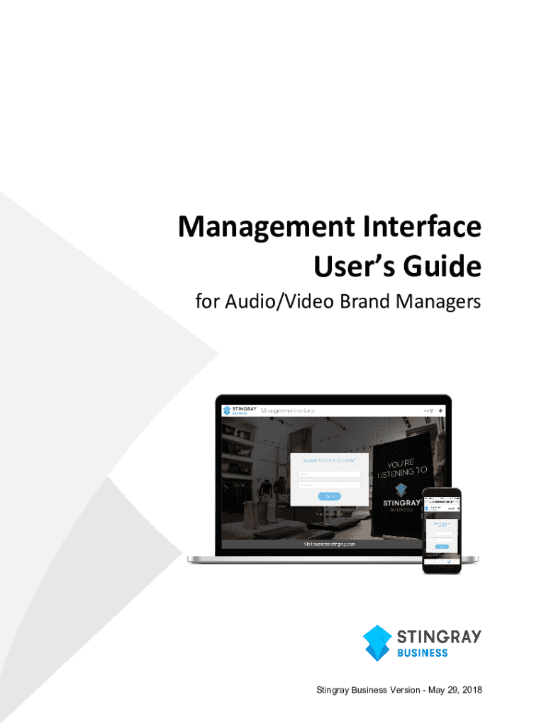 Management Interface Users Guide for Audio/Video Brand ManagersStingray Business Version May 29, 2018 2018 Stingray Digital Media Group. All rights reserved. STINGRAY and other related marks and logos