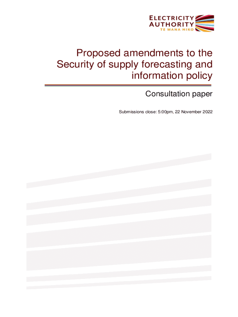 Proposed amendments to the Security of supply forecasting and information policy Consultation paper Submissions close: 5:00pm, 22 November 2022Executive summary The security of supply forecasting