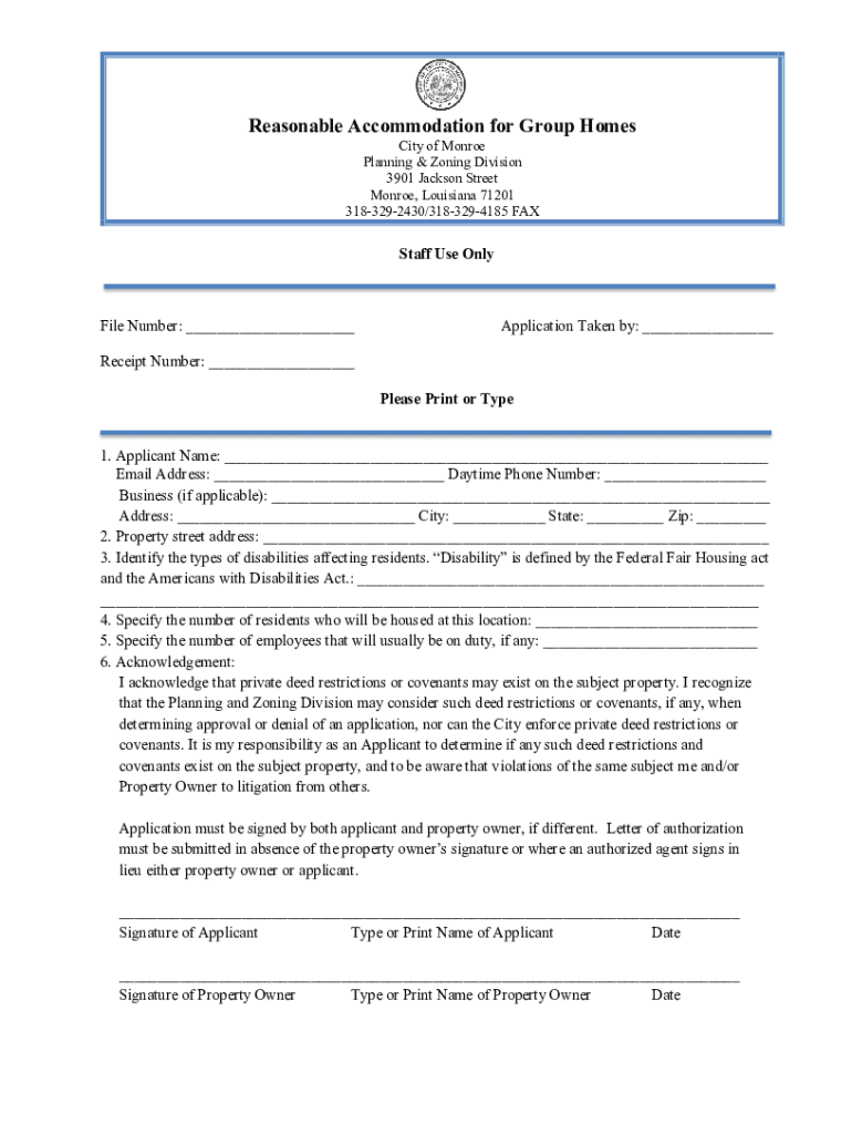 Get the free Procedure for Reasonable Accommodation for Group Home