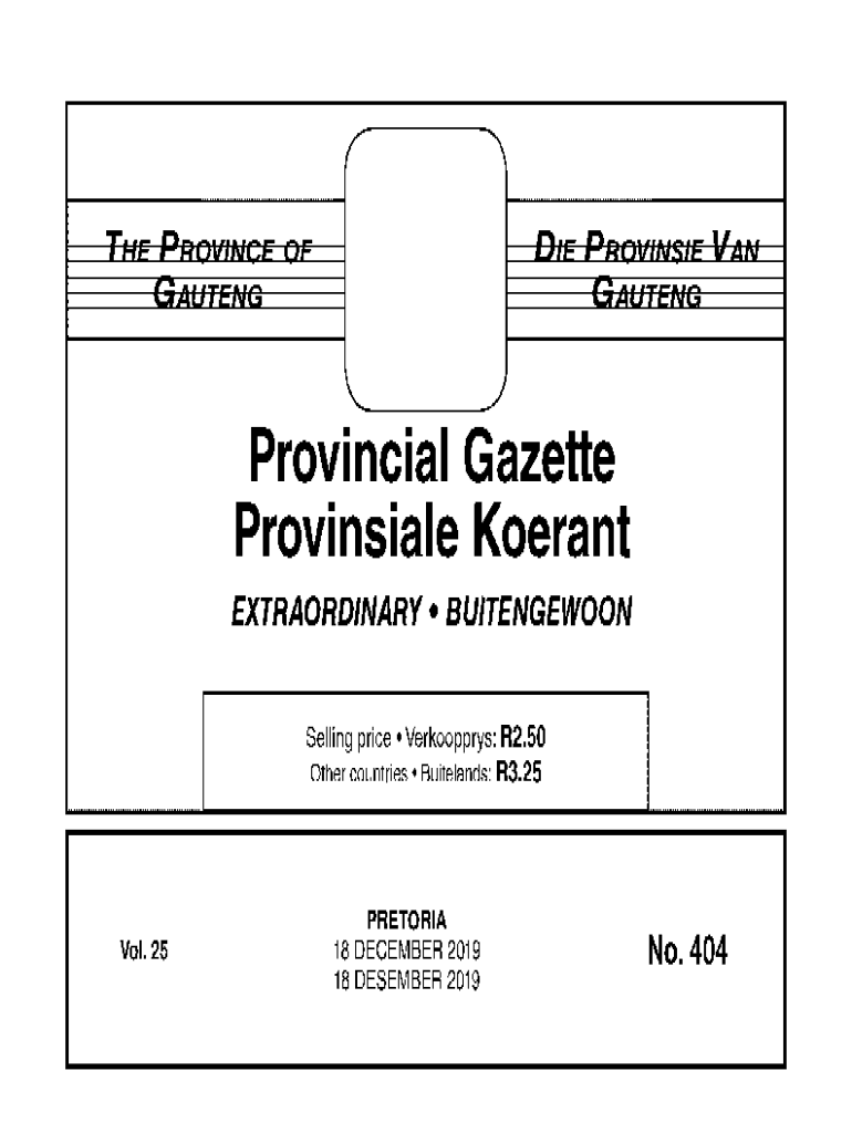 T RIR _I.VIII., r___ _ _ \' \'. A;......., _I.LVIV:\” r___ v.... I. . I. J__\'\'.;. Vc.;.provincial Gazette Provincial Korean EXTRAORDINARY BUITENGEWOON Selling price Verkoopprys: R2.50 Other countries