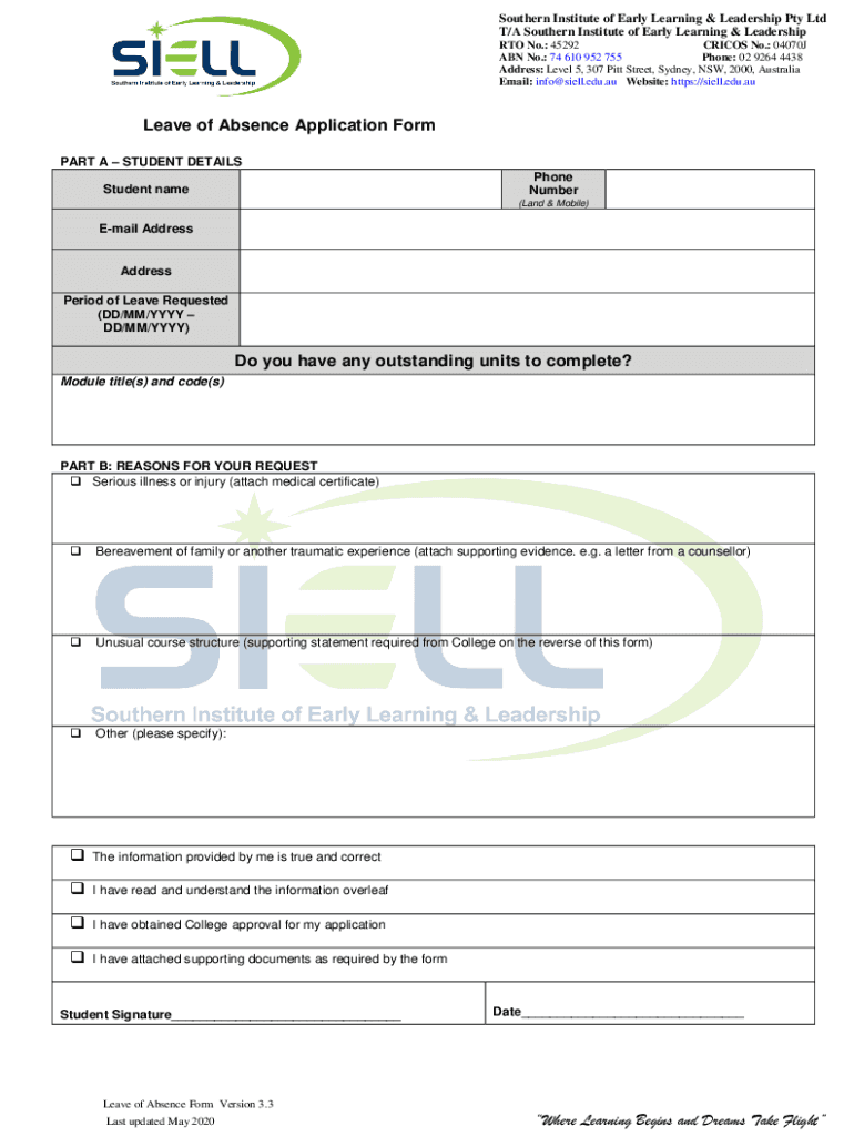 Get the free Leave of Absence Application Form - Southern Institute of Early ...