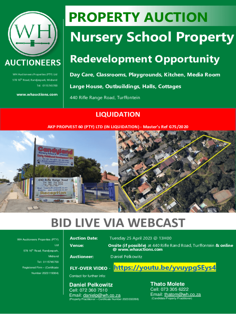 WH Auctioneers Properties (PTY) Ltd Day Care, Classrooms, Playgrounds, Kitchen, Media Room578 16th Road, Randjespark, Midland