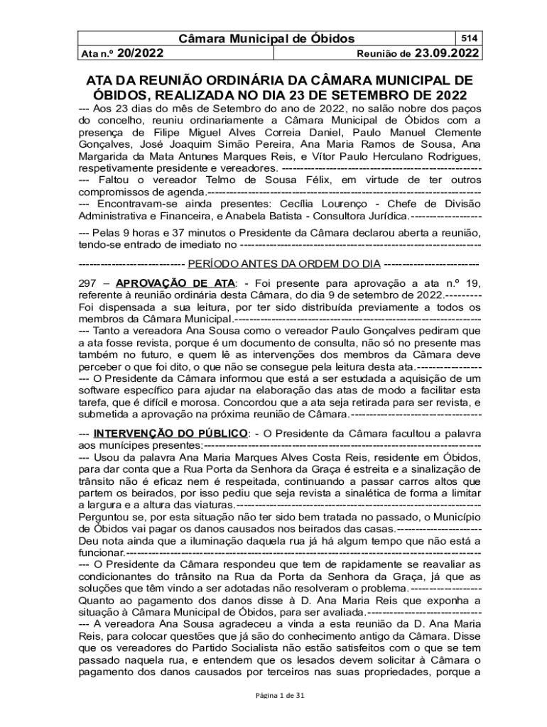 Reunion de23.09.2022ATA DA REUNION ORD INRIA DA CLARA MUNICIPAL DE