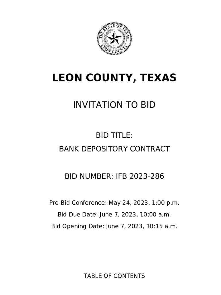 Instructions for the BANK SPECIFICATIONS AND SERVICES REQUIRED form