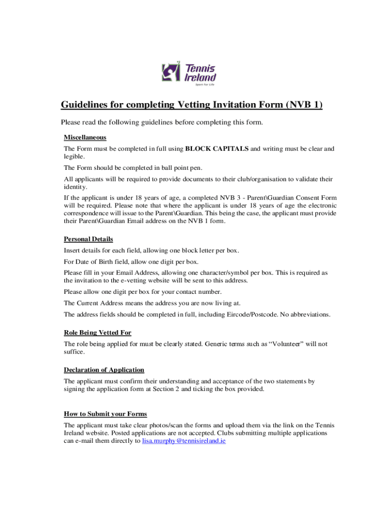 Guidelines for completing Vetting Invitation Form (IVB 1)