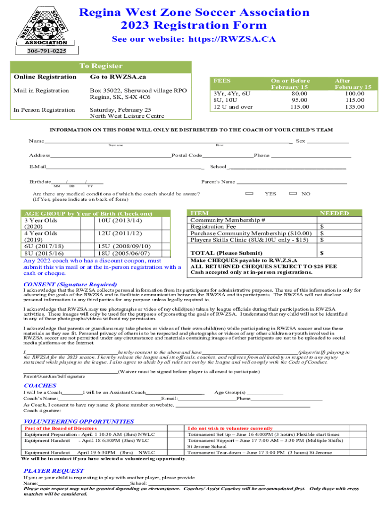 Fill out your regina west zone soccer online with pdfFiller!