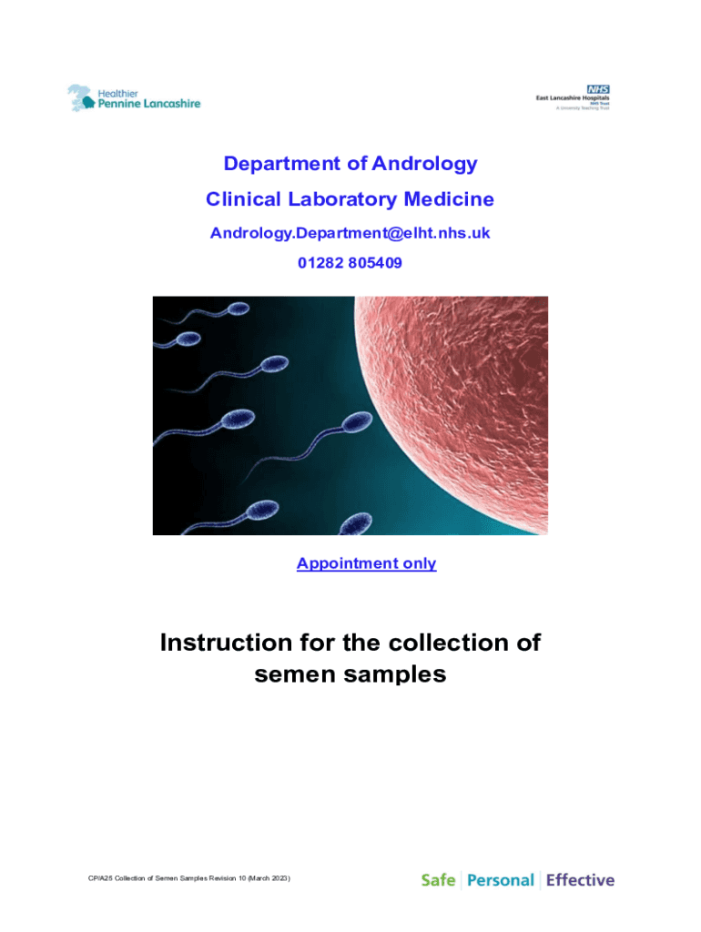 Get the free Instruction for the collection of semen samples for Andrology - elht nhs