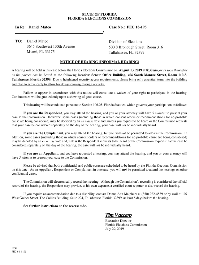 ___/Case No.: FEC 18195TO:Division of Elections